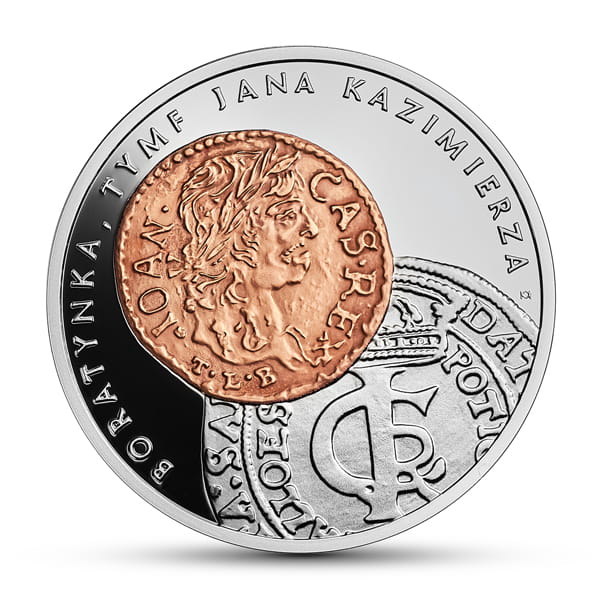 Burzliwe czasy, gdy na tronie zasiadał Jan Kazimierz (1648−1668), przyniosły ważne zmiany w polskim mennictwie. Najbardziej widoczną było pojawienie się w wielkich ilościach drobnej, czysto miedzianej monety − zdeprecjonowanego szeląga. Szelągi te nazywane są boratynkami od nazwiska włoskiego przedsiębiorcy Tytusa Liwiusza Boratyniego. Wybijał on setki milionów tych monet w kilku mennicach, m.in. na zamku w Ujazdowie (dziś w granicach Warszawy). Były one potrzebne do opłacenia buntującego się wojska. Drugą nowością w polskim systemie menniczym było wprowadzenie srebrnej monety jednozłotowej w postaci fizycznej. Do tej pory złotówka była jedynie jednostką rozliczeniową. Jak dawniej stanowiła równowartość 30 groszy. W rzeczywistości jednak jej wartość realna była o połowę niższa z powodu dużej domieszki miedzi. Złotówkę tę nazywano z kolei tymfem od nazwiska innego przedsiębiorcy menniczego – Andrzeja Tymfa (Andreas Tümphe z północnych Niemiec). Jest więc zrozumiałe, że to właśnie te dwa nowe rodzaje monet zostały wybrane do zaprezentowania polskiego mennictwa tego okresu. Na awersie naszej nowej monety widnieje rewers tymfa, a na nim, pod koroną, nietypowa tarcza czteropolowa; po jej bokach litery A – T (Andrzej Tymf). W dwóch górnych polach tarczy umieszczono Orła i Pogoń, czyli herby Korony i Litwy. Dolne pole wypełnia napis określający nominał monety: XXX GRO / · POL·; w środku Snopek Wazów. W otoku napis: MONET[A]: NOV[A]: ARG[ENTEA]:REG[NI] POL[ONIAE] 1663, czyli „moneta nowa, srebrna Królestwa Polskiego”. W tle opisanego rewersu tymfa umieszczono obowiązkową, okrągłą metryczkę z danymi określającymi emitenta współczesnej monety, czyli z Orłem i legendą RZECZPOSPOLITA POLSKA, oraz datą 2018. Jako dodatkowy element, mający uatrakcyjnić cały stempel, a jednocześnie przybliżyć do epoki, wybrano motyw architektoniczny – sylwetkę późnobarokowego (XVII/XVIII w.) kościoła kamedułów z fundacji Jana Kazimierza w Wigrach. Motyw ten, w poddruku laserowym, umieszczono w pustym polu z lewej strony tarczy jako jej tło. Na stronie odwrotnej nowej monety widzimy awers tymfa z dużym monogramem królewskim pod koroną – ICR (Joannes Casimirus Rex). Wokół, w podwójnym otoku, biegnie niezwykła legenda, która tłumaczy niską jakość monety: DAT·PRETIVM·SERVATA·SALVS· / POTIORQ3·METALLO EST, co znaczy: „Wartość [tej monecie] nadaje ocalone dobro [Rzeczypospolitej], które jest droższe od metalu”. Opisany awers złotówki stanowi tło dla drugiej z opisywanych tutaj monet – miedzianego szeląga. Z braku miejsca pokazano tylko jego awers, czyli stylizowane na antyk popiersie Jana Kazimierza w laurowym wieńcu. Otacza je legenda z imionami króla: IOAN· – CAS· REX· Na dole monogram Tytusa Liwiusza Boratyniego: T·L·B· Na górze w półłuku biegnie napis objaśniający nazwę nowej monety: BORATYNKA, TYMF JANA KAZIMIERZA. Stanisław Suchodolski
