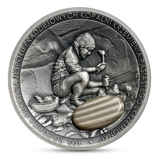 Moneta 50 zł 100. rocznica odkrycia zespołu pradziejowych kopalni krzemienia pasiastego „Krzemionki”